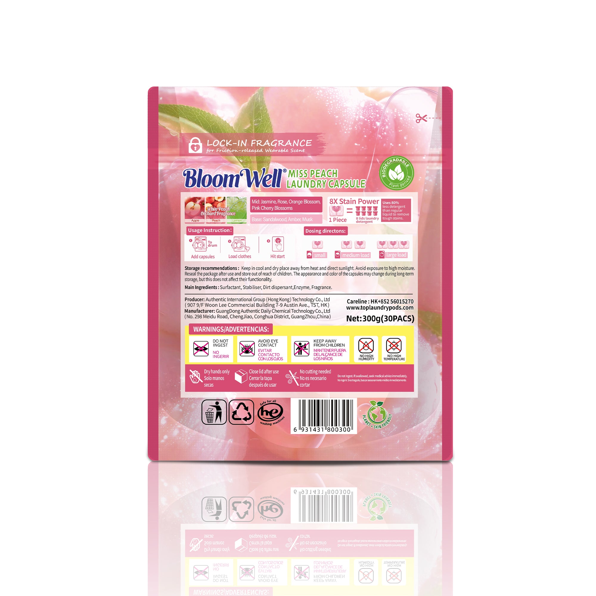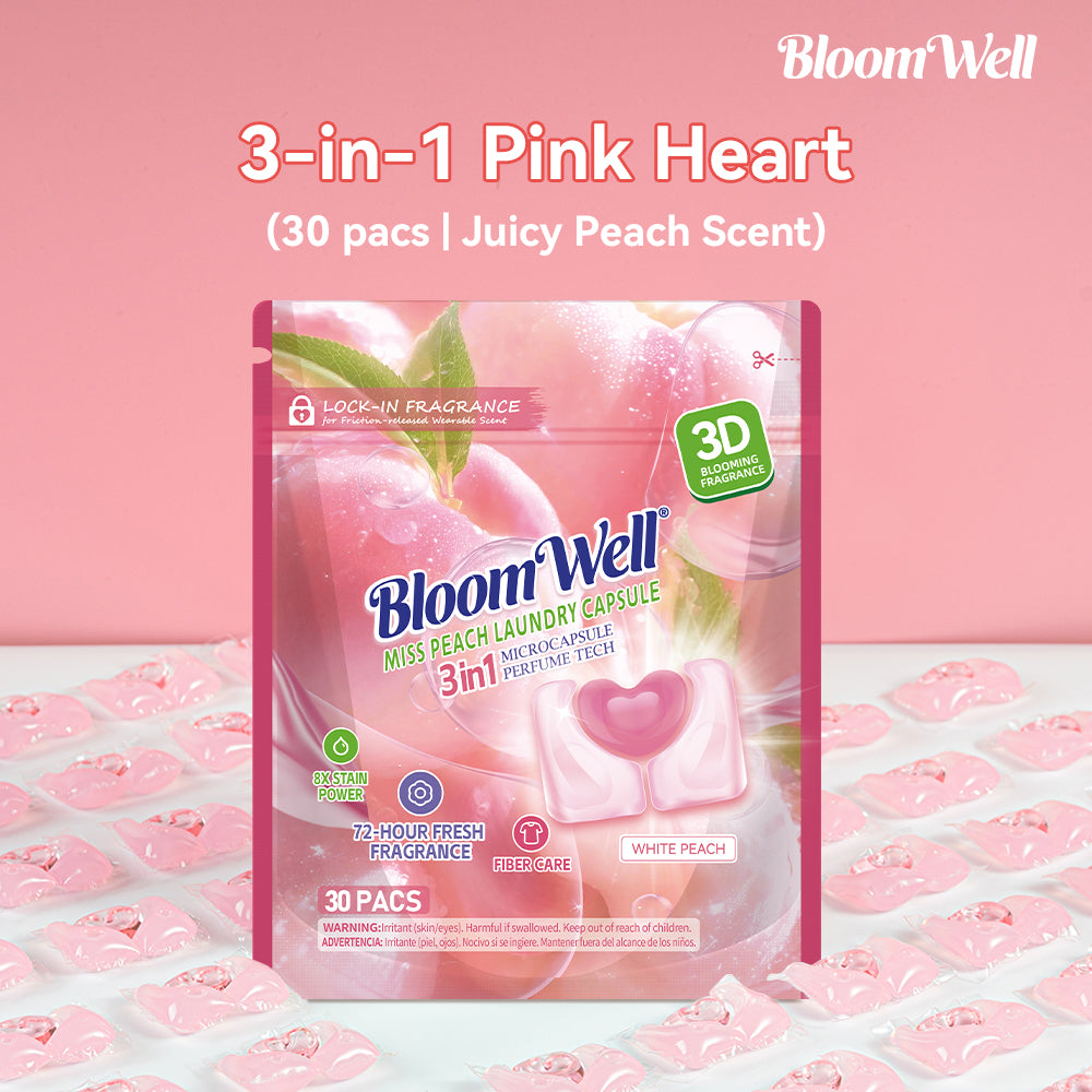 These pods dissolve quickly and leave no residue. The peach smell is mouthwatering, and the subtle sakura scent lasts for days.