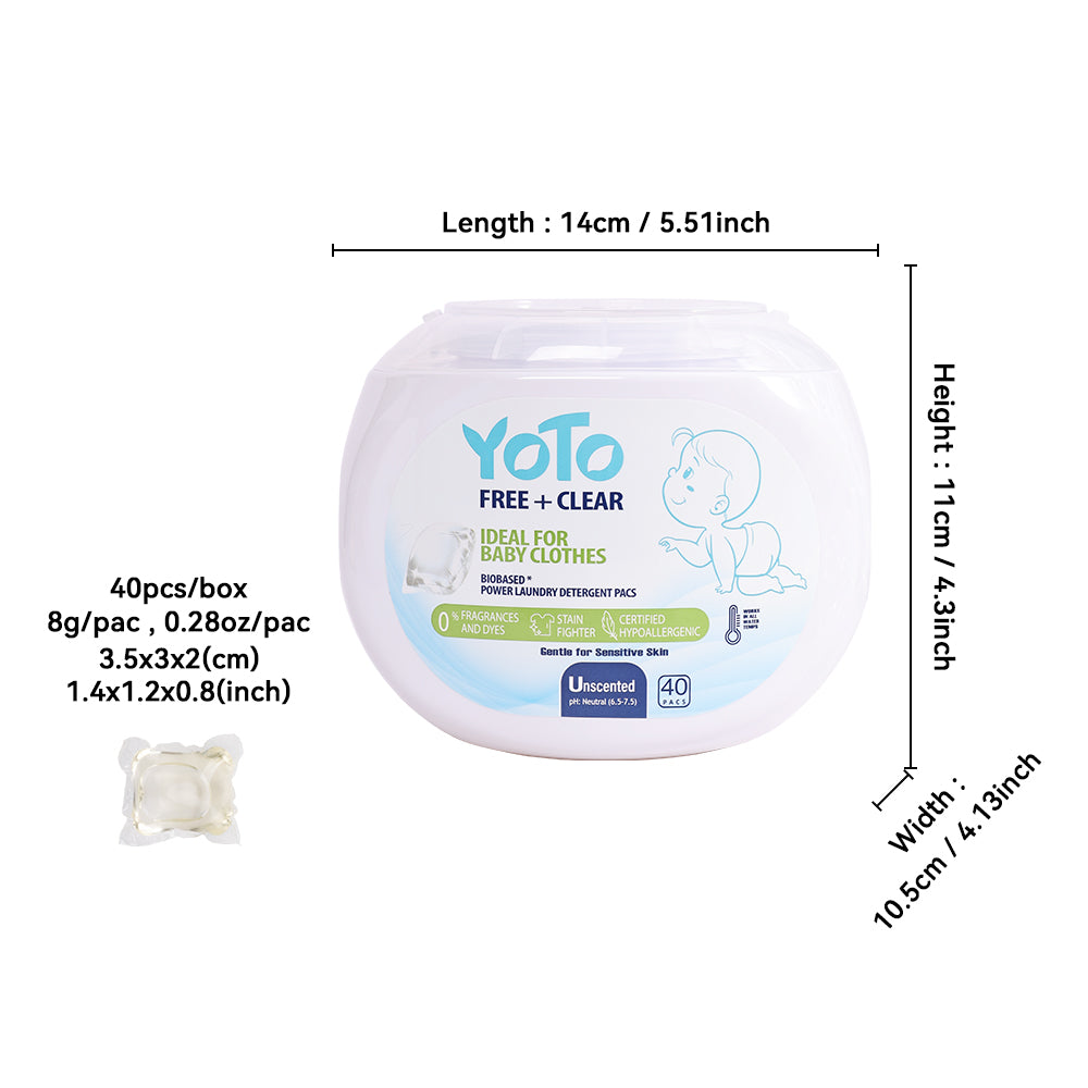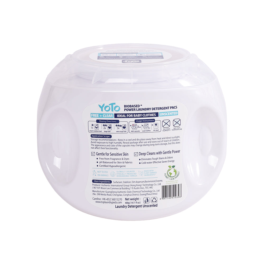 Biobased power laundry detergent pacs | Unscented | 40 pacs per tub | Works in all water temps